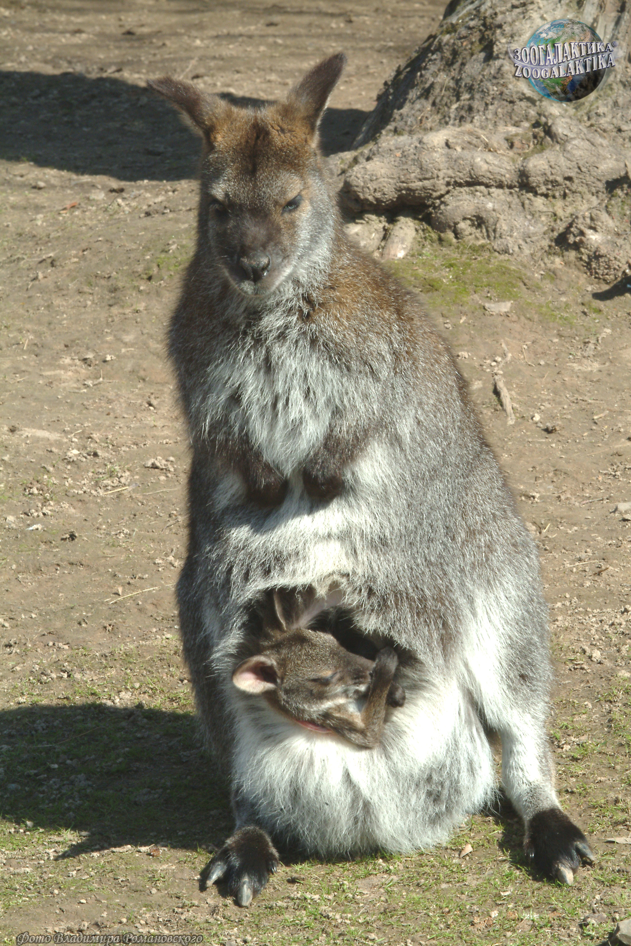 6. У самцов кенгуру сумки нет, она есть только у самок. Сумка у кенгуру гладкая, но перед входом мех толстый, чтобы малышу всегда было тепло. Мама-кенгуру умеет «управлять» входом в сумку. Она может крепко-накрепко закрыть вход при контакте с водой, чтобы не намочить малыша, и сама решает, когда кенгуренку можно вылезти на волю. Кенгуренок живет в сумке довольно продолжительное время, до 6 месяцев. Хотя, даже годовалый, уже относительно самостоятельный кенгуренок при любой опасности сразу прячется в материнскую сумку.