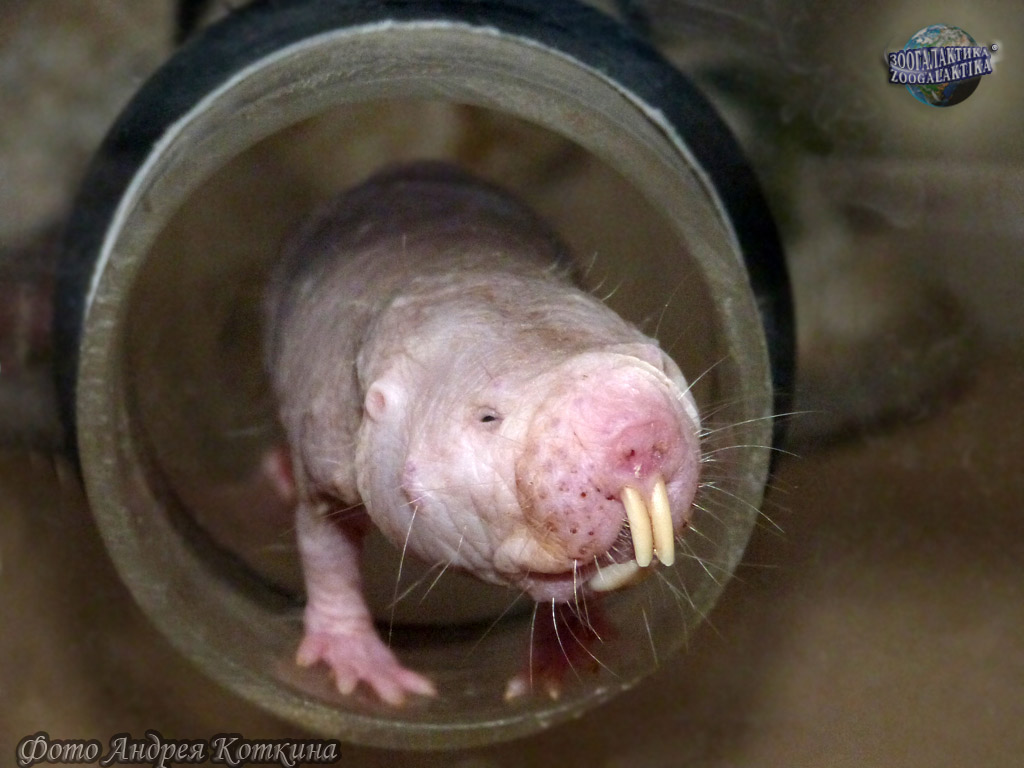 Существа называются голыми землекопами. Они действительно голые – всё их «одеяние» составляют несколько десятков волосков, разбросанных по телу от головы до хвоста. И они действительно землекопы: на своей территории семья таких зверьков прорывает от 3 до 5 км подземных ходов, ежегодно выбрасывая на поверхность 3-4 тонны грунта. Копают, понятно, без лопаты, но также и без лап — обратите внимание на их нежные конечности без когтей. Эти землекопы врезаются в почву зубами, выдвинутыми далеко вперёд резцами. Зубы выходят за пределы губ, так что грызуны роют с плотно сжатым ртом без риска наглотаться земли.