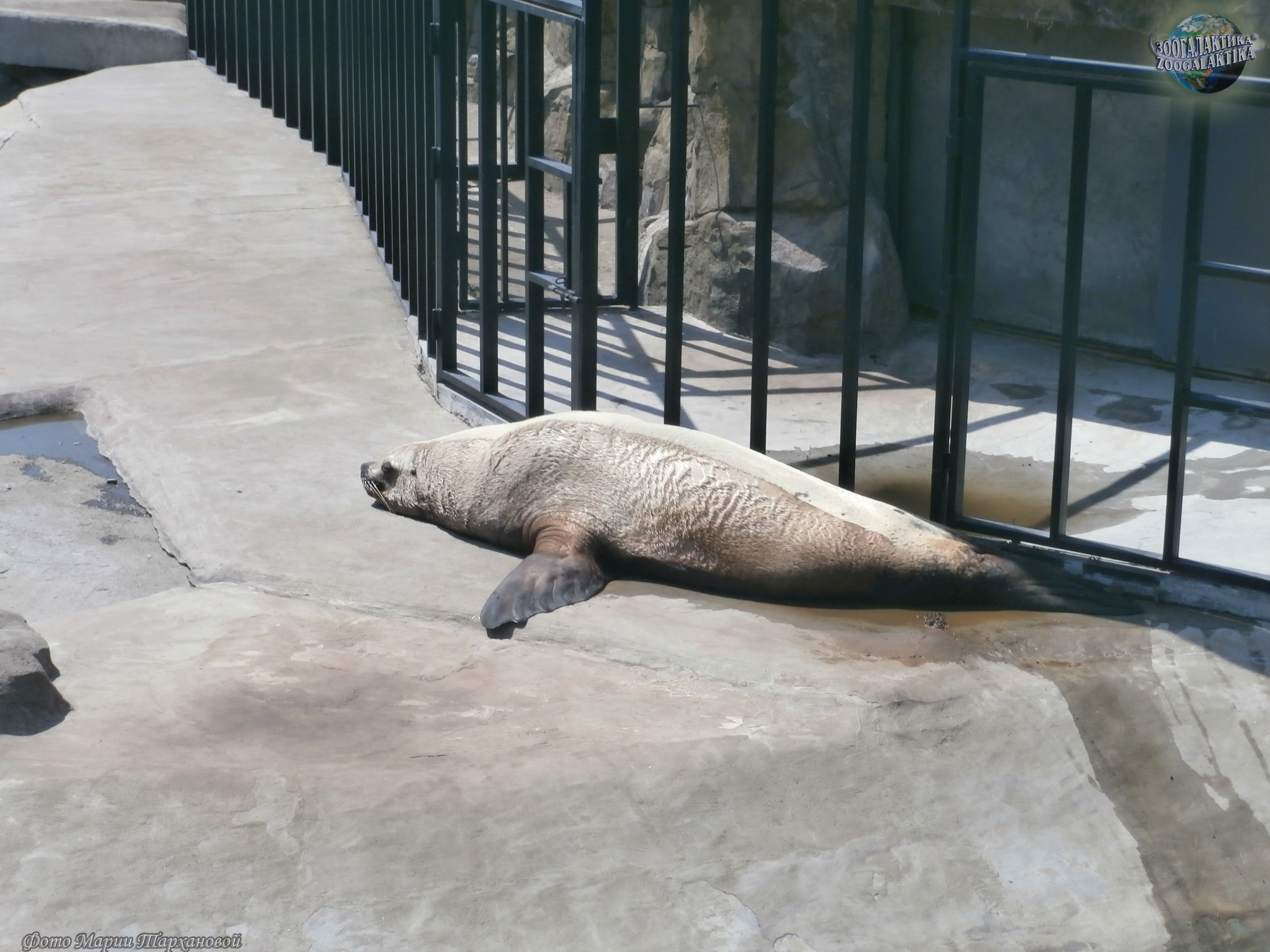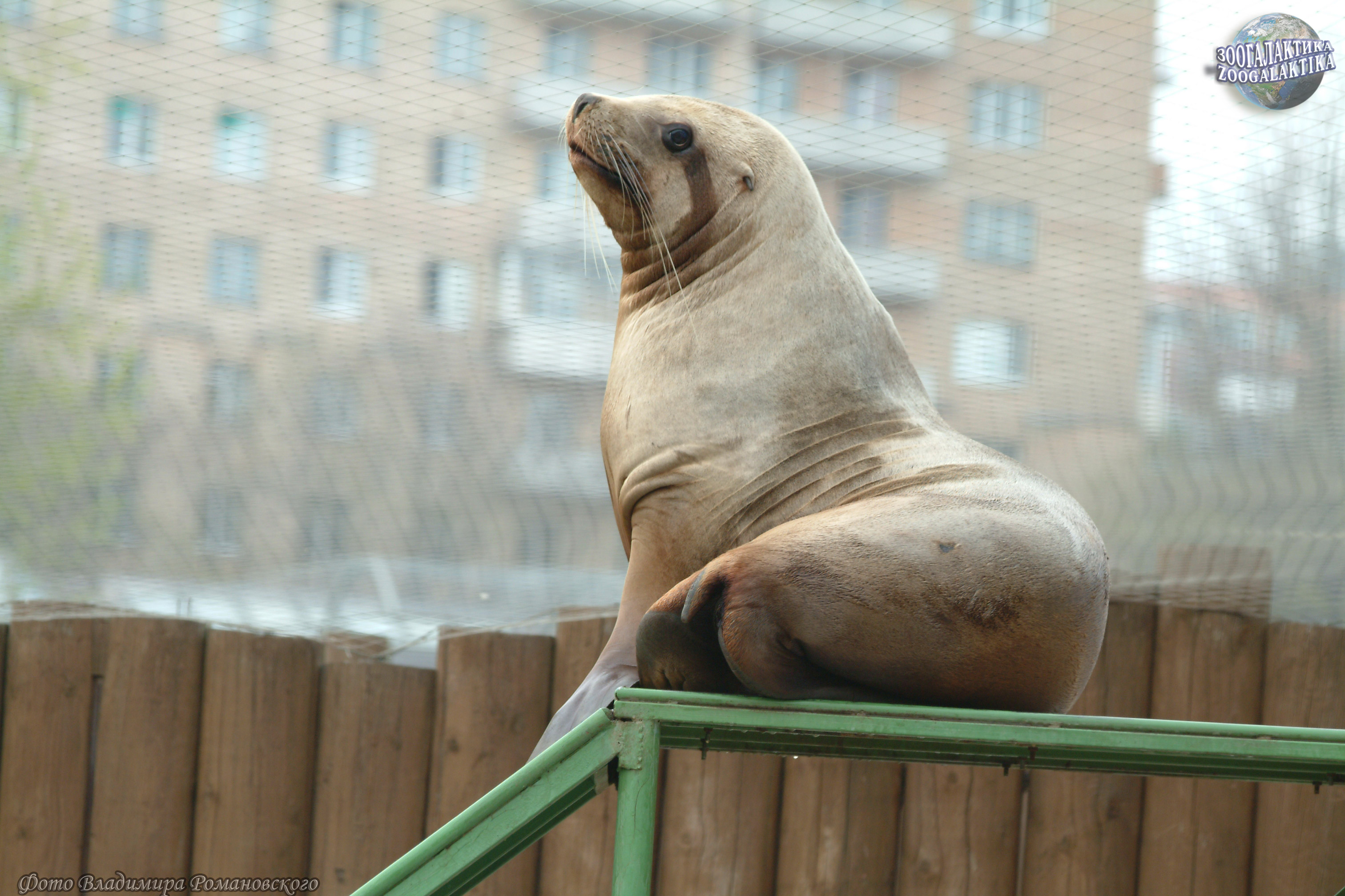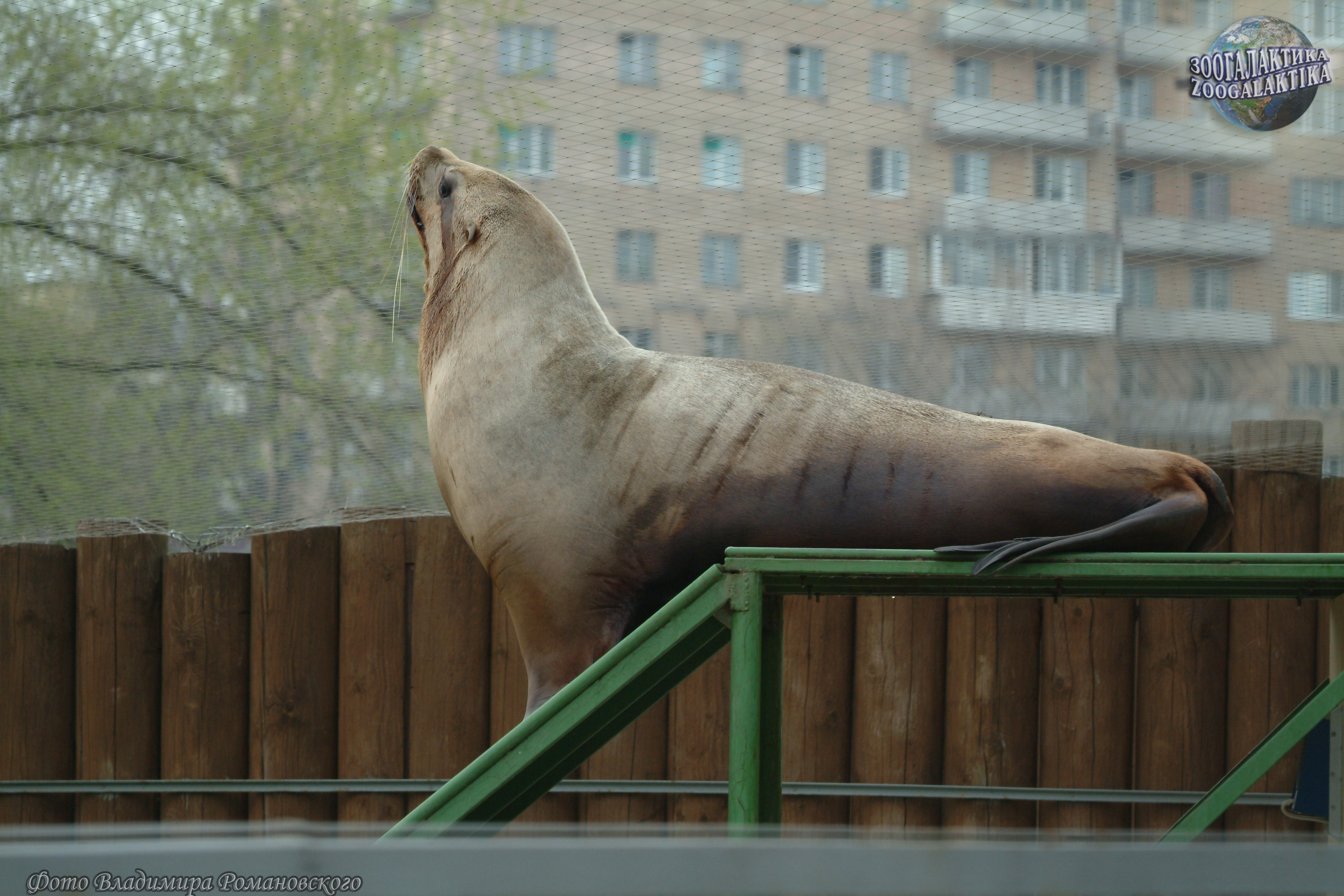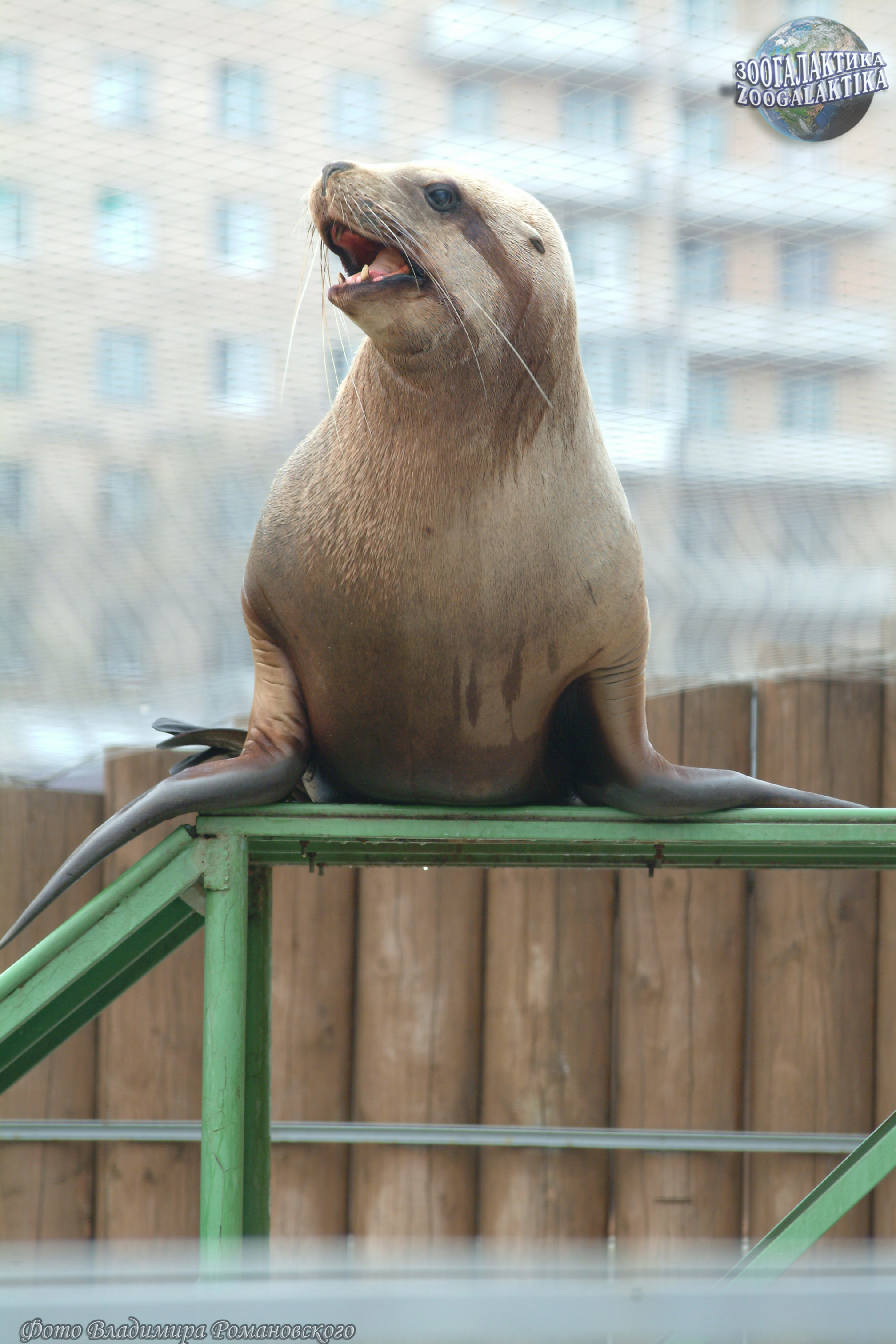Сивуч (Eumetopias jubatus) - один из наиболее крупных ластоногих и самый крупный в семействе ушастых тюленей. Длина взрослого самца 3,2-3,5 м, масса тела колеблется от 500 до 1120 кг, самки значительно мельче: длина их тела обычно не больше 2,5 метров, а масса в среднем - 350 кг. Несмотря на крупные размеры и неуклюжий на суше вид, в природе сивучи могут забираться высоко по почти отвесным скалам и при опасности прыгать в воду с десятиметровой высоты. Сивуч, живущий в московском зоопарке, тоже временами проявляет чудеса ловкости - он буквально «взлетает» на горку, установленную у него в вольере, и с удовольствием обозревает отутда окрестности (см. фото).