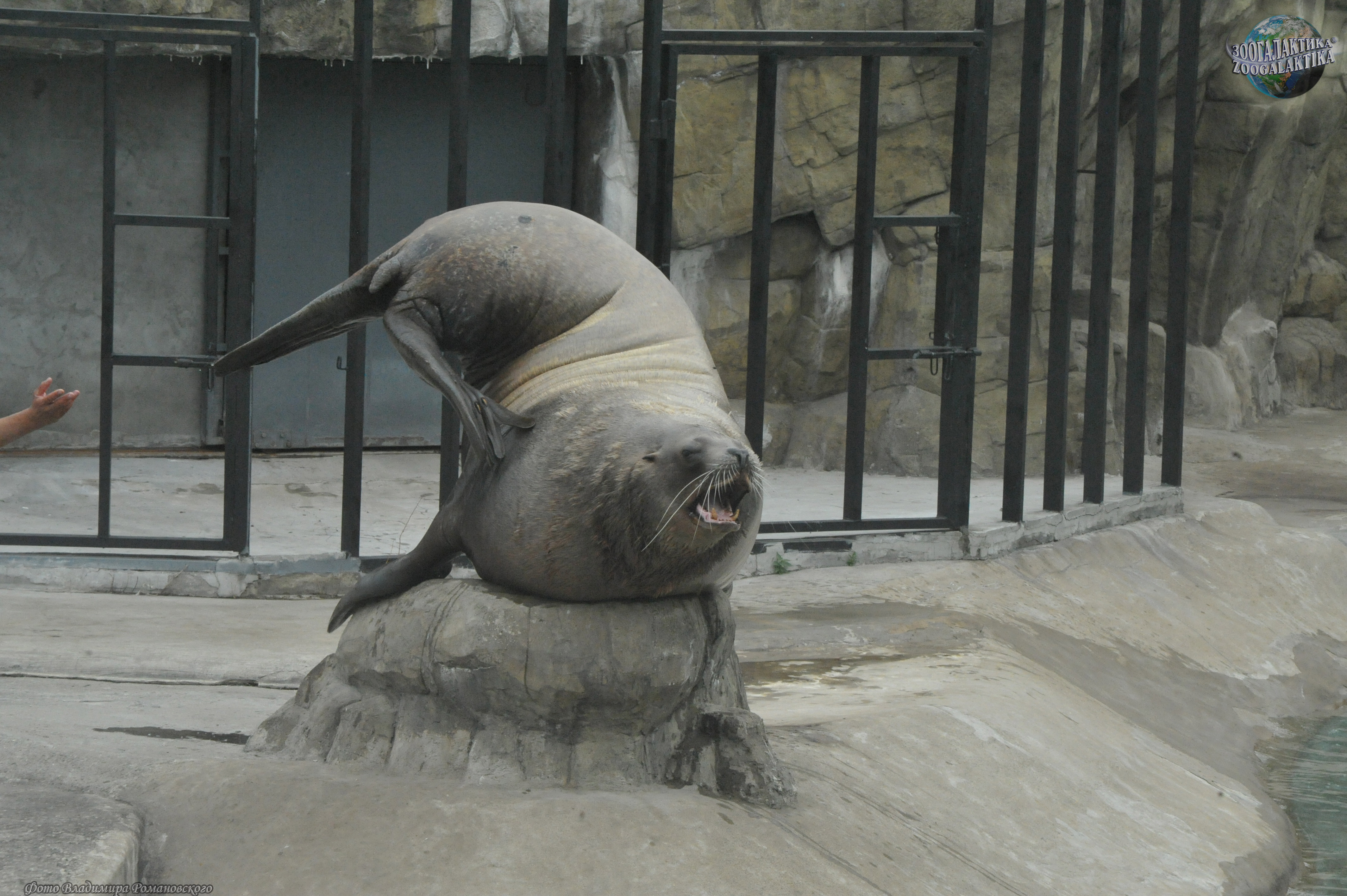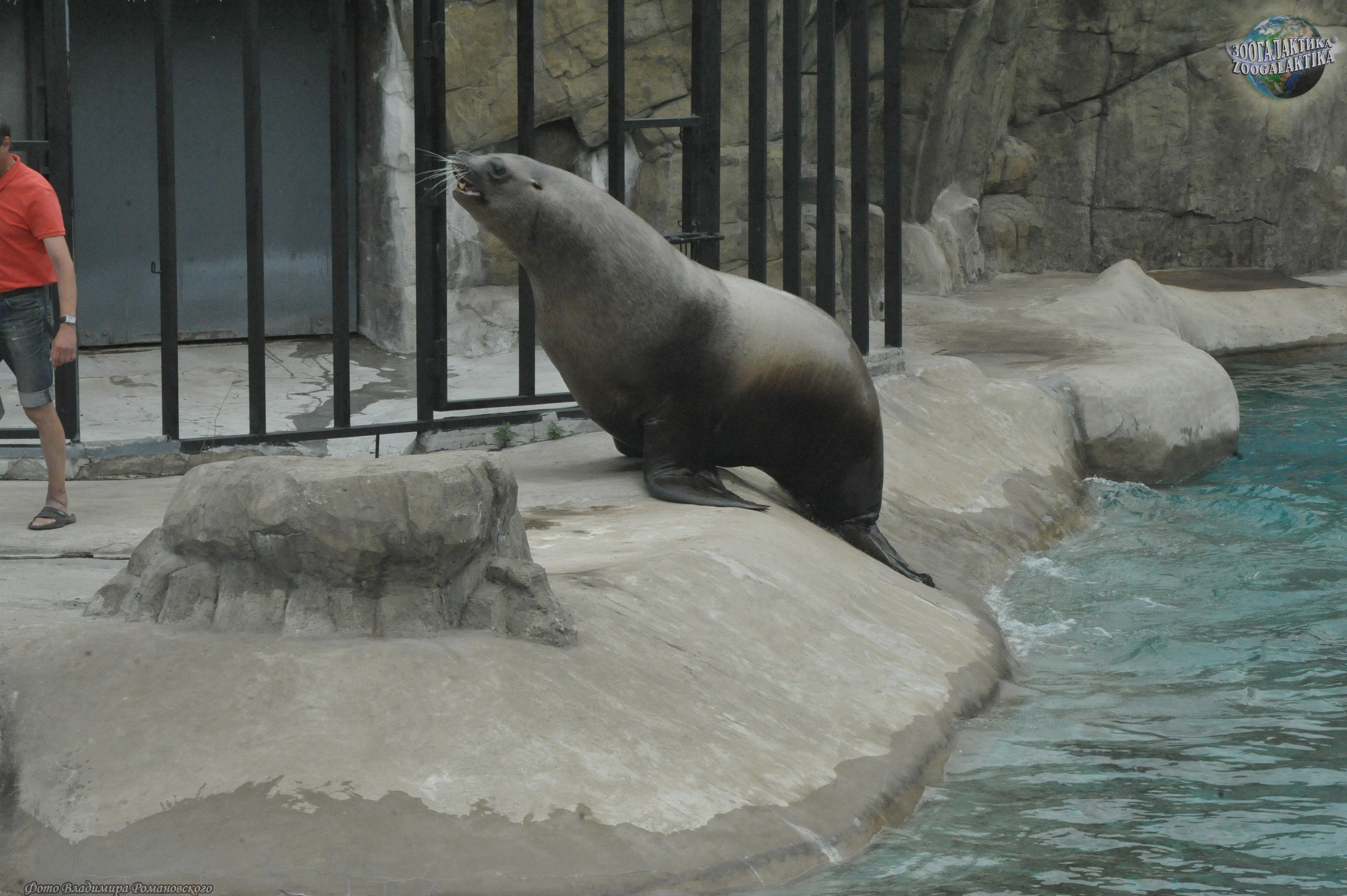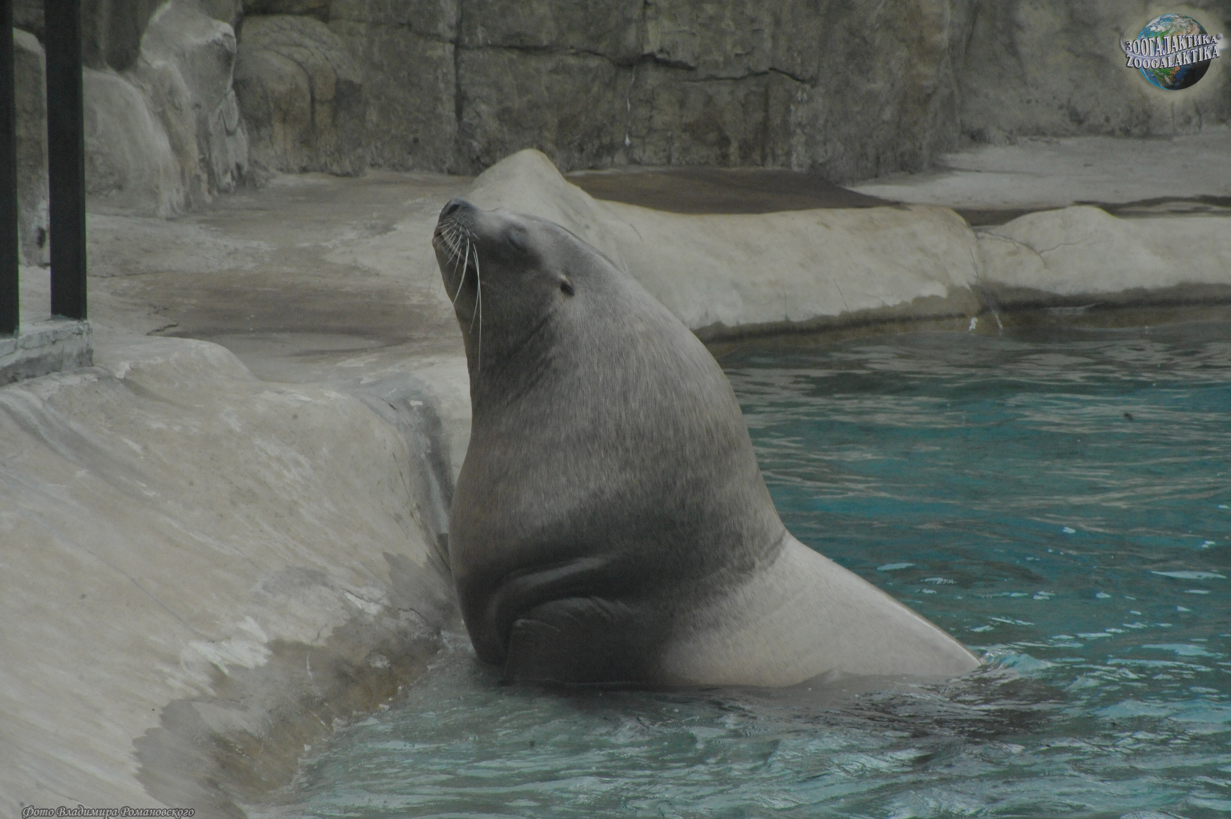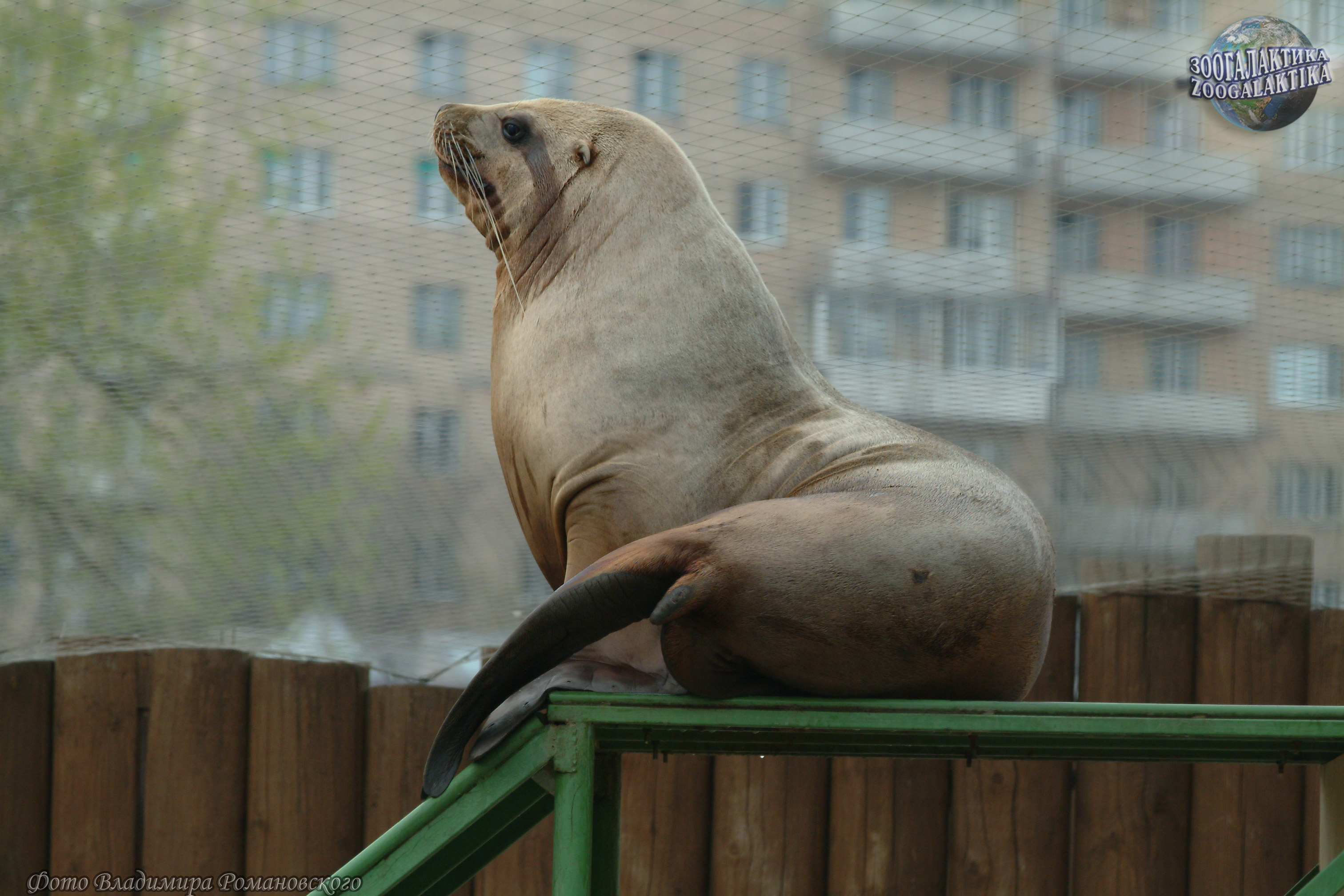 Сивуч (Eumetopias jubatus) - один из наиболее крупных ластоногих и самый крупный в семействе ушастых тюленей. Длина взрослого самца 3,2-3,5 м, масса тела колеблется от 500 до 1120 кг, самки значительно мельче: длина их тела обычно не больше 2,5 метров, а масса в среднем - 350 кг. Несмотря на крупные размеры и неуклюжий на суше вид, в природе сивучи могут забираться высоко по почти отвесным скалам и при опасности прыгать в воду с десятиметровой высоты. Сивуч, живущий в московском зоопарке, тоже временами проявляет чудеса ловкости - он буквально «взлетает» на горку, установленную у него в вольере, и с удовольствием обозревает отутда окрестности (см. фото).