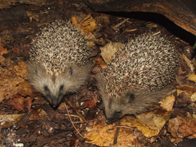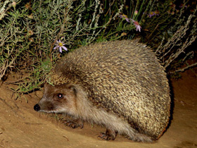 У ежей очень тонкий слух и прекрасное обоняние, позволяющие им чувствовать добычу на глубине нескольких метров под землей. А вот зрение у них слабое, впрочем ночному животному оно не так уж важно. Зимой ежи спят в логове из травы, листьев и мха. В этот период температура тела у них понижается до 2-3 градусов, а частота дыхания до 6-8 раз в минуту. Всю зиму они ничего не едят и живут за счет накопленного с осени жировых запасов: перед впадением в спячку ежи весят 700-950 г, весной же не больше 350 г. Для потомства ежиха тоже строит специальное логово, где и рожает 5-6 (иногда от 3 до 10) ежат. Новорожденные слепые, глухие и голые, но уже через несколько часов у них появляются мягкие белые иголочки. Они очень быстро растут, темнеют и уже недели через две становятся такими же, как у взрослых. Питаются ежи в основном различными беспозвоночными (пауками, слизнями, червями, насекомыми), но не отказываются и от мышей, лягушек и птенцов. Поедают они и ягоды, плоды и семена растений. Ест еж очень много и за ночь съедает столько же, сколько весит сам.