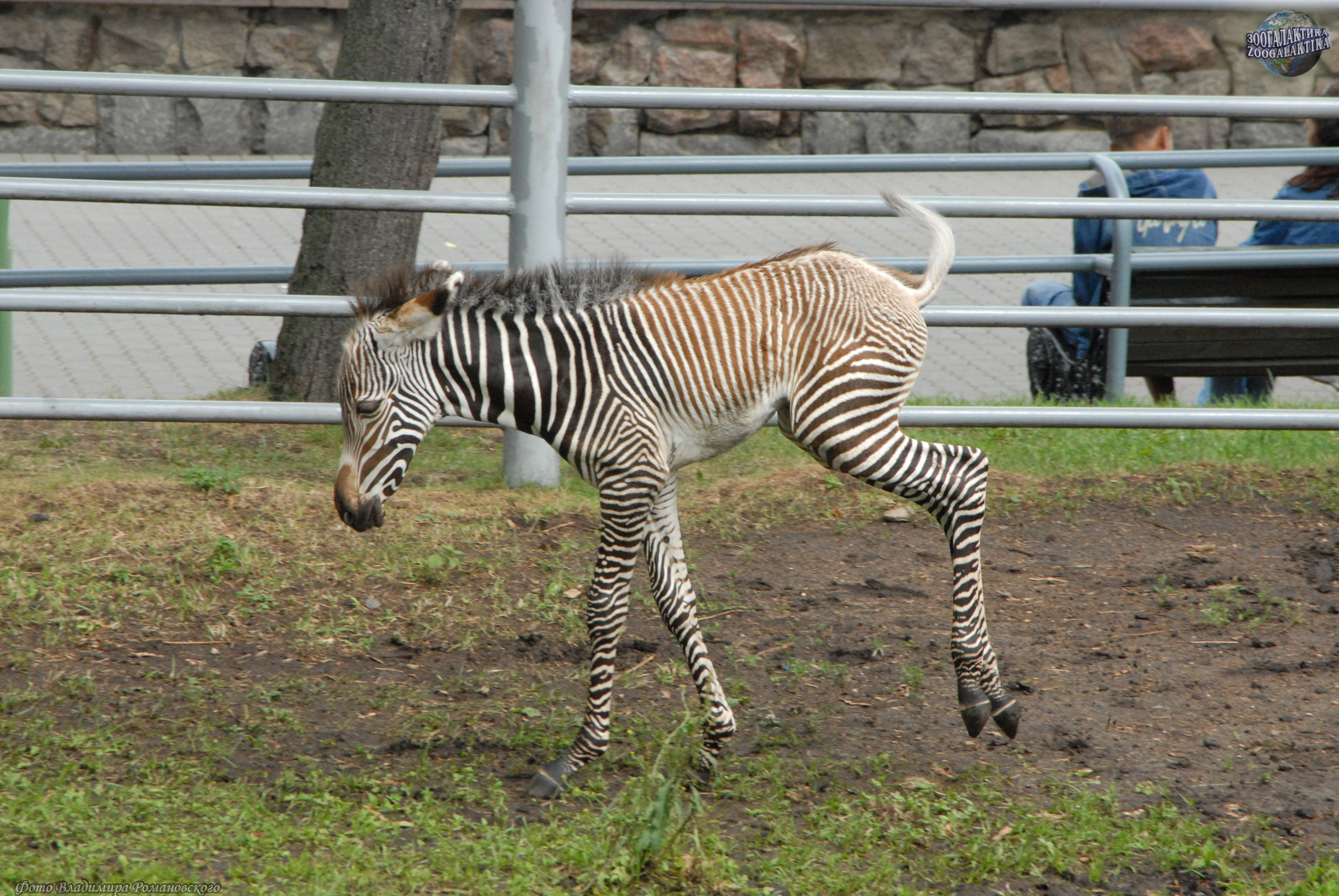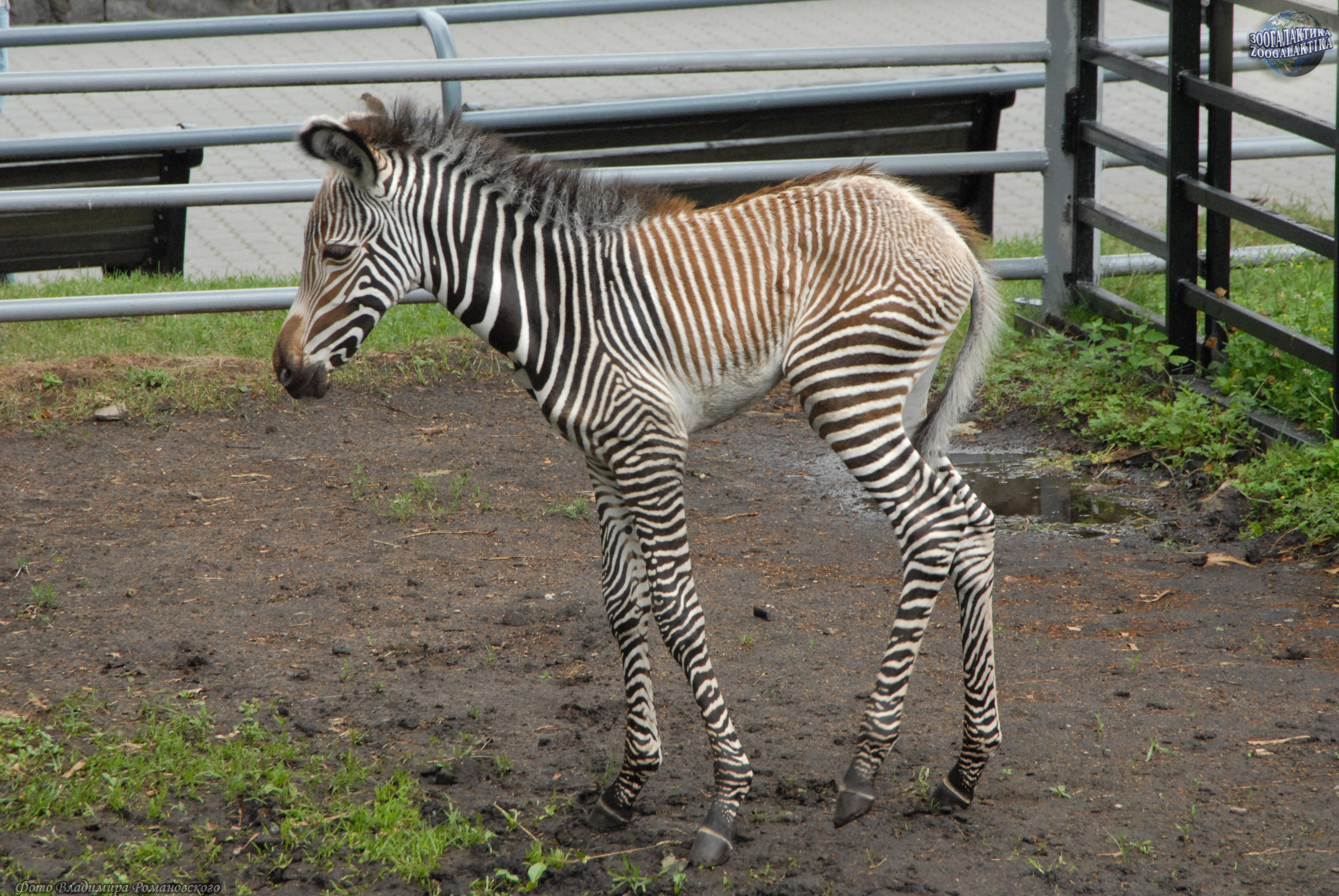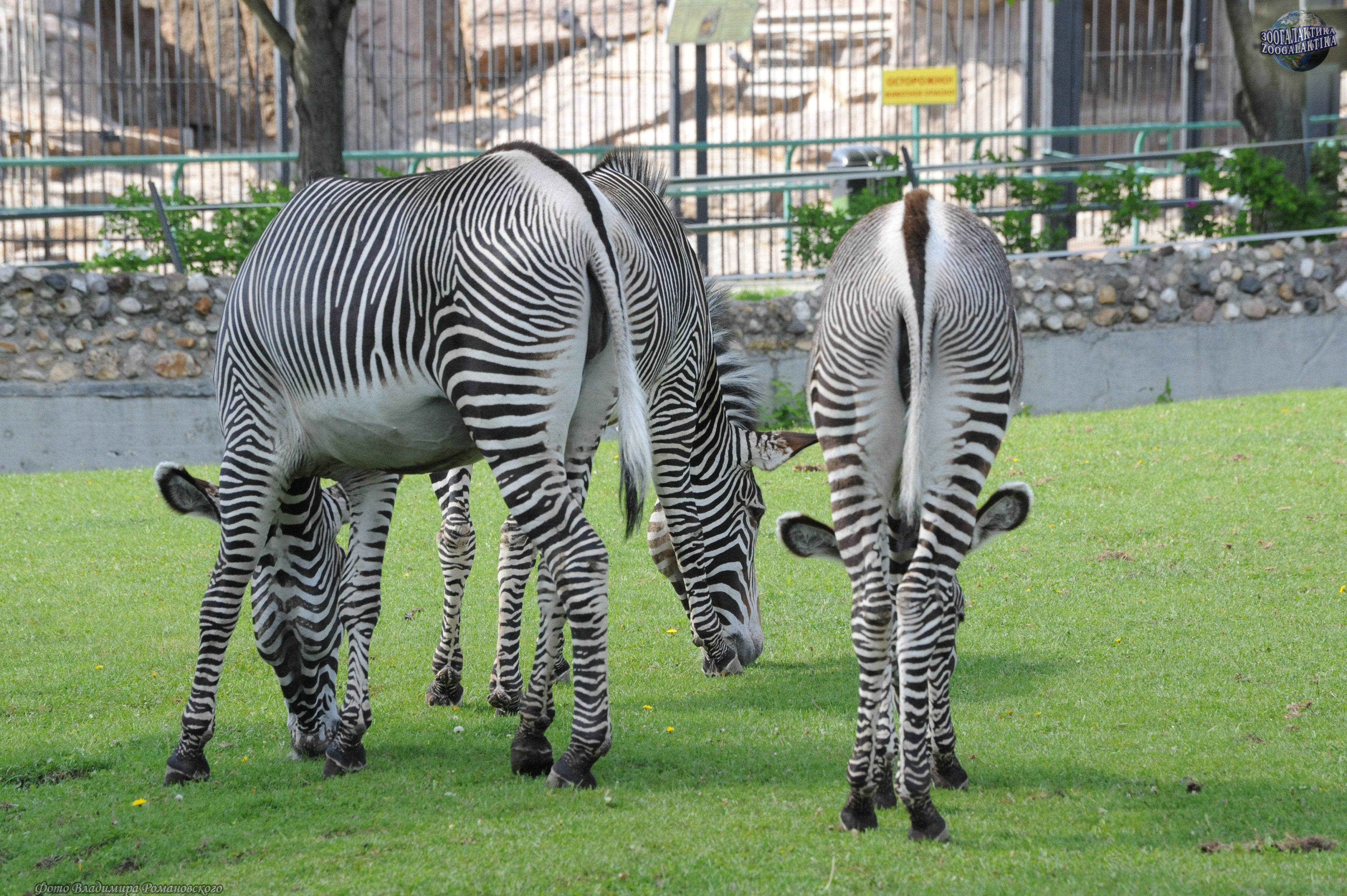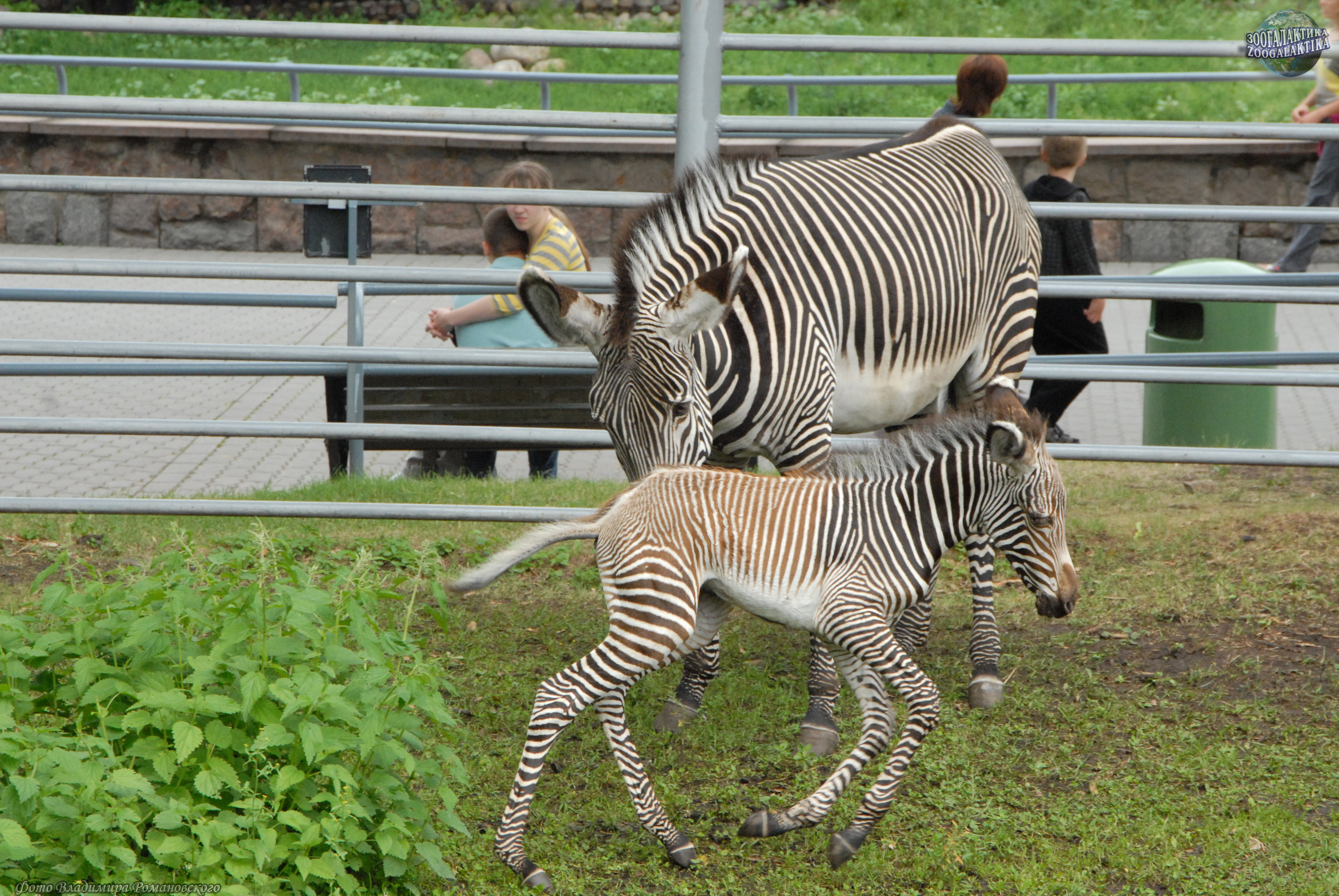 Зебры обычно держатся группами - табунами, в составе которых только один взрослый самец - отец всех жеребят (фото 9 - гон у зебр). Когда самка рожает, он всегда находится поблизости и готов защитить беспомощную супругу от нападения хищников. После беременности продолжительностью более года, на свет появляется один жеребёнок, который через 20 минут после появления на свет может ходить, а через час уже резво прыгает и готов следовать за мамой (фото 10-15 - зебрёнок 2 дней от роду; фото 16 - малышу 1 неделя).