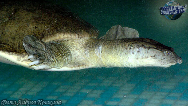 Наиболее древний вид мягкотелых черепах, поскольку панцирь ее имеет больше окостенений, чем у всех остальных видов семейства. Спинной панцирь обрамлен рядом костных пластинок, и в брюшном щите костные поля обширны, а хрящевые промежутки узки. Любопытны защитные приспособления — парные кожистые клапаны на задней части пластрона, прикрывающие втянутые задние ноги. Кроме этого, при опасности черепаха смыкает передние края пластрона и карапакса, укрывая голову и передние ноги. Хоботок у лопастной черепахи короткий, губы очень мясистые. Округлый сравнительно высокий панцирь длиной до 25 см окрашен в зеленовато-коричневый цвет с желтыми пятнами. Лопастную черепаху можно встретить в Западном Пакистане, Индии, Бирме и на Цейлоне. Она широко используется в пищу местными жителями. При содержании в неволе черепаха, в отличие от остальных своих родичей, никогда не кусается, но очень осторожна и выходит на охоту лишь по ночам. Лягушки составляют ее излюбленное блюдо.